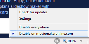 Besplatni blokator reklama isključuje se na sajtu moviemakeronline.com na sljedeći način: